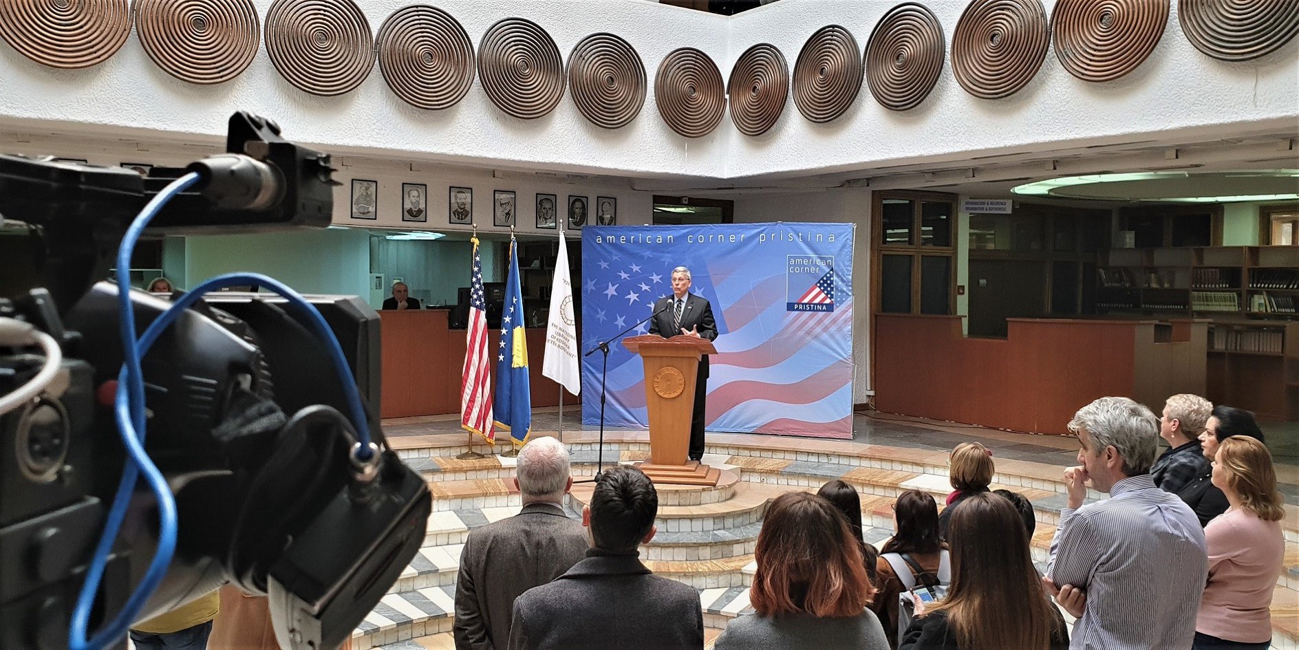 Në një fjalë rasti, Ambasadori Kosnett falenderoi stafin e Këndit Amerikan, menaxhmentin e Bibliotekës Kombëtare dhe kompanitë kontraktuese në projekt.